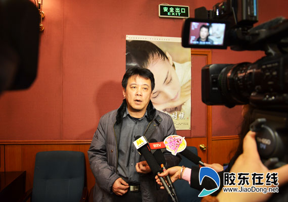 中央电视台电影频道著名主持人蓝羽(中)与“童星”叮当等主要演员互动