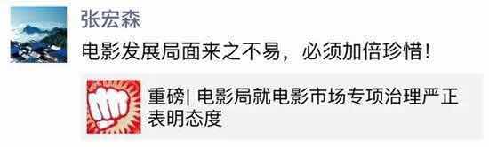 电影局局长张宏森朋友圈截图,疑评论《叶问3》买票房一事