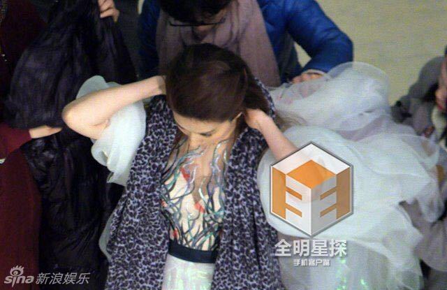来到现场先换装,此时略显香艳的一幕发生了:面色倨傲冷艳的刘亦菲换上了一件仙女范儿十足的白色纱裙,胸口镂空,虽有五色花纹图案略加遮挡,但事业线仍然若隐若现。