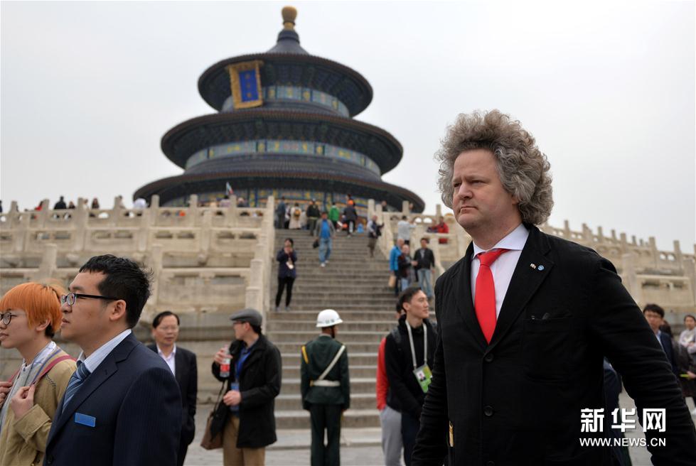 当日,第六届北京国际电影节评委团成员参观天坛公园。