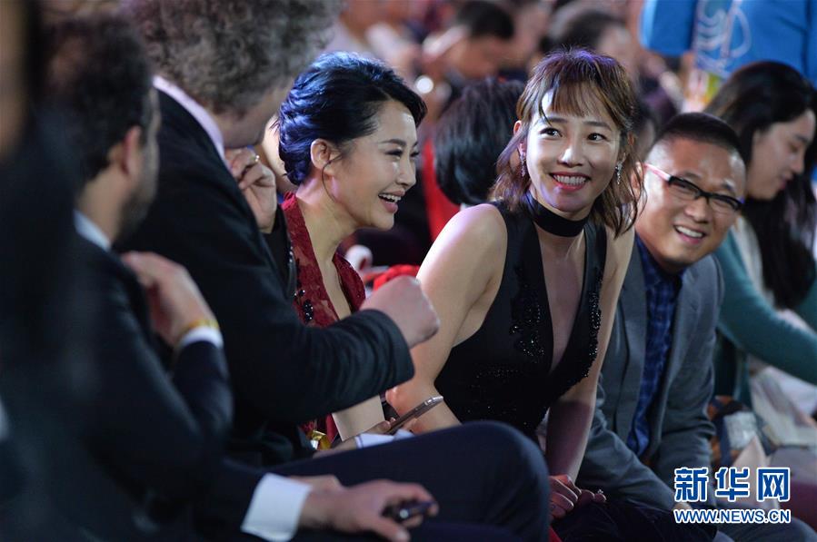 4月23日,白百何(右二)、许晴(右三)出席闭幕式。当日,第六届北京国际电影节在北京雁栖湖国际会展中心闭幕。 新华社记者李鑫摄