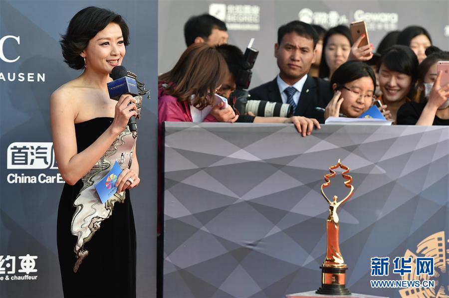 4月23日,向真(左)在闭幕红毯主持。当日,第六届北京国际电影节在北京雁栖湖国际会展中心闭幕。 新华社记者李鑫摄