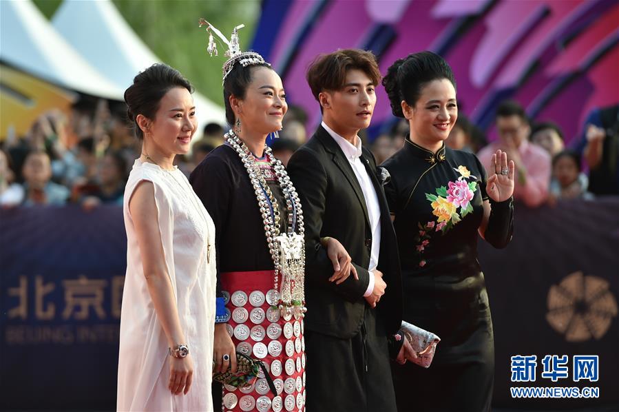 4月23日,《侗族大歌》剧组亮相闭幕红毯。当日,第六届北京国际电影节在北京雁栖湖国际会展中心闭幕。 新华社记者李鑫摄