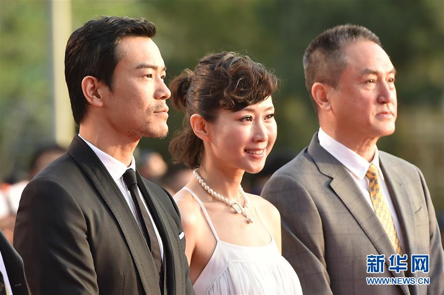 4月23日,廖凡(左)、李霞(中)亮相闭幕红毯。当日,第六届北京国际电影节在北京雁栖湖国际会展中心闭幕。 新华社记者李鑫摄