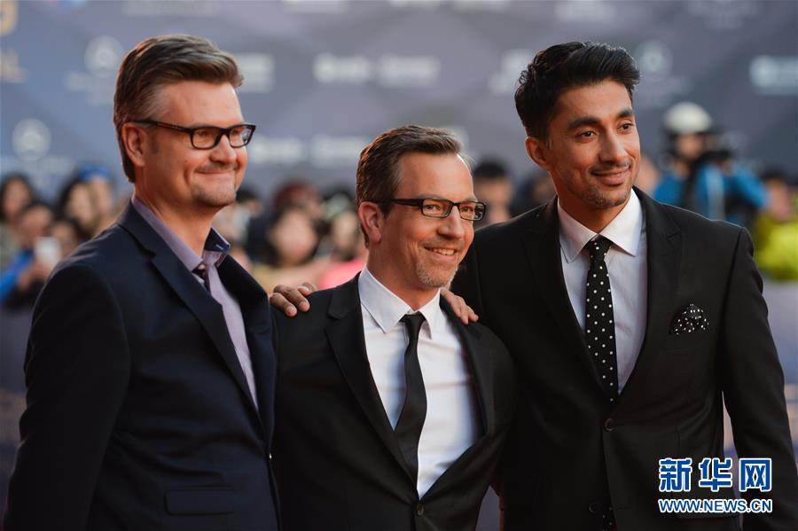 4月23日,入围影片《月之暗面》剧组亮相闭幕红毯。当日,第六届北京国际电影节在北京雁栖湖国际会展中心闭幕。 新华社记者陈斌摄