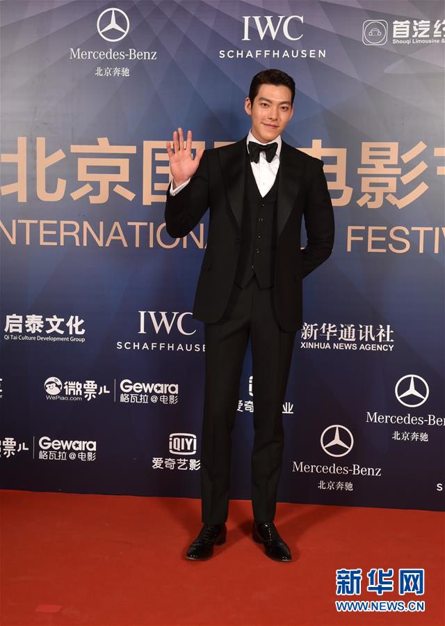 4月23日,韩国演员金宇彬亮相闭幕红毯。当日,第六届北京国际电影节在北京雁栖湖国际会展中心闭幕。 新华社记者李贺摄