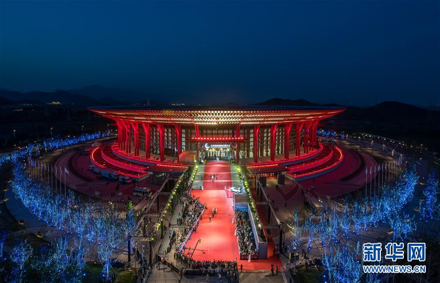 4月23日拍摄的闭幕式红毯现场。当日,第六届北京国际电影节在北京雁栖湖国际会展中心闭幕。 新华社记者陈益宸摄