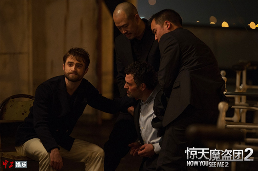 在此次发布的“澳门风云”版人物关系剧照中,几位角色之间原本扑朔迷离的关系更显复杂。剧照中,四骑士和马克·鲁法洛5人共处一室合谋大计,同盟关系呼之欲出;而在杰西·艾森伯格与马克·鲁法洛的单独对阵中,两人却表情微妙,气氛似乎并不和谐。暗潮涌动之间,两人是否只是表面互相配合的同盟关系,观众不得而知。在冲突重重的剧照中,“哈利·波特”丹尼尔·雷德克里夫的反派身份显露无遗,无论是在他与马克·鲁法洛还是与四骑士之首杰西·艾森伯格的关系剧照中,都能看出丹尼尔·雷德克里夫与天眼组织成员的对立关系。至于演变成这一险恶关系的前因后果,以及其间穿插的充满悬疑的层层阴谋,就要等影片上映后再一一揭晓了。至于周杰伦面向四骑士以及马克·鲁法洛的站位可以看出,他在影片中的角色不仅仅只是一个魔术道具店老板这么简单。而剧照中,画风一变,互相走近的戴夫·弗兰科和丽兹·卡潘,将整个阴暗神秘的风格瞬间变成了充满小清新暧昧情愫的恋爱场所,两个年轻人的爱情故事也许将在这里发生。