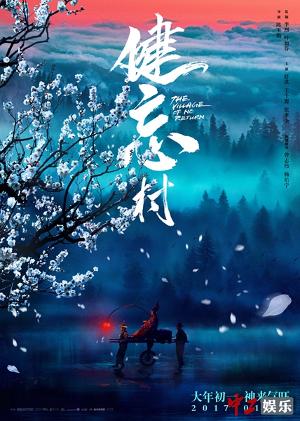 一版“秘境”海报中,冰雪纷飞的漫天背景里,树木徒剩下光秃秃的枝丫,草木银装素裹,王千源提的那盏灯笼,犹如寒冬里的唯一光明,暖黄色调搭配整体暗冷基调,愈发让人感觉扑朔迷离,对剧情充满好奇,又仿佛《健忘村》就是大年初一冬日里的一束温暖,让人暖心过年。另一版“秘境”海报里,一树桃花迎风舞动,花瓣在空中旋转跳跃,占据了大半幅的画面,将健忘村的世外桃源气质体现得淋漓尽致。远处蓝黑色调的群山笼罩在云雾缭绕的仙境中,亦真亦幻,天空的一抹红霞与王千源提的红灯笼相映生辉,一股神秘气息扑面而来,奇幻质感呼之欲出。尤其海报上“神来气旺”传递出“见旺”寓意,预示着影片将在明年大年初一送给观众一份吉年好运,让2017年春节档的氛围变得热闹非凡。