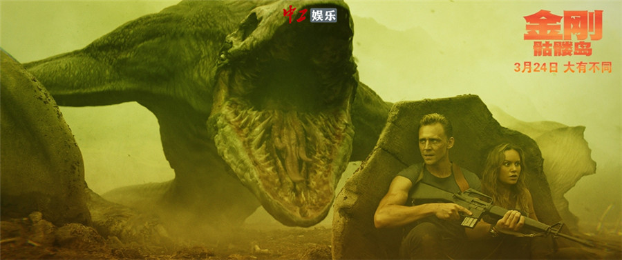 中工娱乐2017年3月14日报道 由华纳兄弟影业、传奇影业、腾讯影业出品的好莱坞动作冒险巨制《金刚:骷髅岛》今日再次投出重磅炸弹,一支“孤岛惊魂”预告片,将骷髅岛上人、兽、怪之间的惨烈厮杀展现的淋漓尽致。各式怪兽齐亮相惊悚无比,一场大战即将开始。抖森和布丽·拉尔森也作为彩蛋惊喜亮相,向中国的观众问好。同时曝光的海报则展现了这只“史上最大金刚”是如何手撕飞机威武发飙的,震撼视觉的效果让人印象深刻。加之北美观众给予本片的好评不断,瞬间让中国观众的期待指数爆棚,3月最爽最燃大片非《金刚:骷髅岛》莫属。该片将于3月24日以2D、3D、IMAX3D、中国巨幕3D、杜比全景声、杜比视界、临境音制式登陆中国院线。
