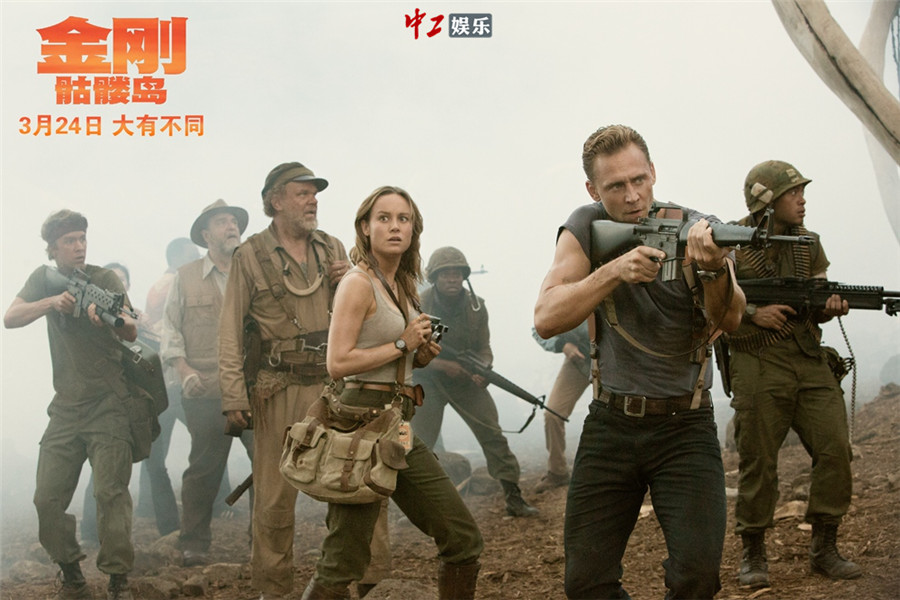 由乔丹·沃格-罗伯茨执导,汤姆·希德勒斯顿、塞缪尔·杰克逊、布丽·拉尔森、约翰·古德曼、景甜、约翰·C·赖利和托比·凯贝尔联袂出演的好莱坞动作冒险巨制《金刚:骷髅岛》将于3月24日以2D、3D、IMAX3D、中国巨幕3D、杜比全景声、杜比视界、临境音制式登陆全国院线。