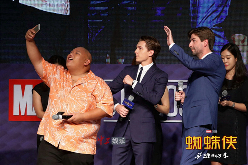 活动当天一早,影片众主创刚抵达韩国仁川机场就受到大批守在机场等待接机的影迷们热情十足的欢迎。在鲜花、尖叫和此起彼伏的闪光灯包围下,“小蜘蛛”荷兰弟大方上前与粉丝们签名、合影,亲和力十足。首映礼现场,不少影迷装扮成蜘蛛侠与红毯上的正版“小蜘蛛”大玩自拍;值得注意的是,红毯两旁更有死侍、钢铁侠、美队等其他漫威人气角色意外现身,似乎想要和这位新晋复联“小鲜肉”同场抢镜。除了收获到满场迷弟迷妹们的欢呼尖叫,导演与荷兰弟还在首映礼上收到韩国影迷精心绘制的蜘蛛侠人像素描及蜘蛛侠韩风版造型画作,足见这位来自美国的超级英雄在韩国观众群同样人气爆棚。