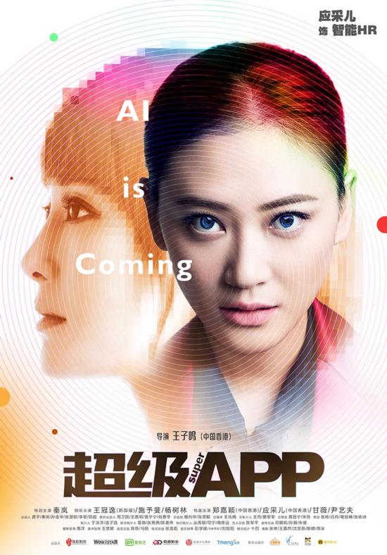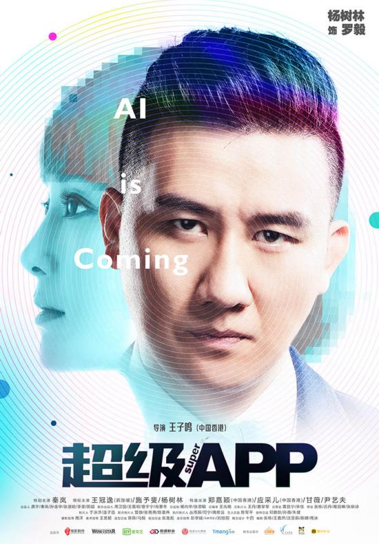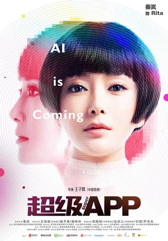 在人物海报中,人物性格愈加明晰。秦岚饰演的人工智能“超级APP”Rita精练短发造型,虽面无表情但蓝色的眼眸却充满故事,作为故事的核心人物,出现在每张海报的背景里,似乎也预示着每个人都将跟她产生密不可分的关系。此外,这组人物海报以明显的位置打出影片英文名“AI IS COMING”,“AI“一语双关,既可理解为“爱马上到来”也可理解为“人工智能马上到来”,《超级APP》虽然是一部黑科技喜剧,爱情依然是其中必不可少的元素。