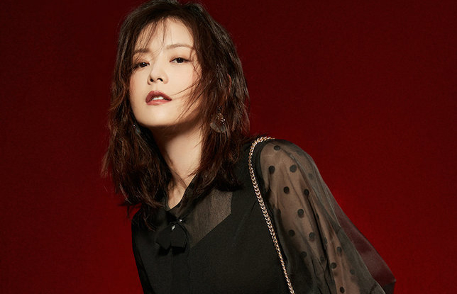 胡冰卿身穿一字肩条纹上衣搭配黑色小皮衣外套,黑色透视长裙搭配条纹高跟鞋帅气满分,在红墙背景衬托下的胡冰卿少女感十足。