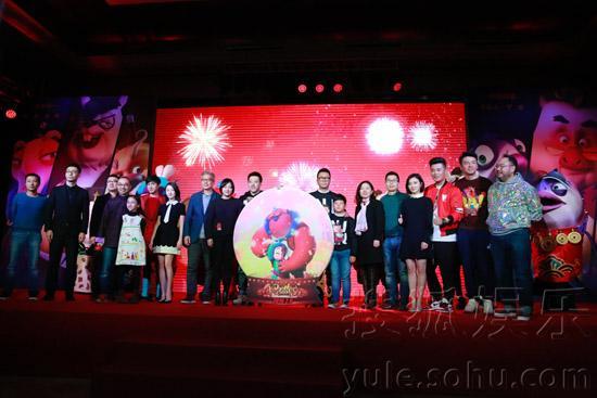 搜狐娱乐讯 2月1日,由张扬执导,宁浩、郭涛联合出品的合家欢动画电影《年兽大作战》在北京举行“开年大红”首映新闻发布会。导演张扬、编剧邢爱娜、雷佳音、周冬雨、陈赫、郭涛、郭子睿、沈腾、张一白、熊乃瑾、王艳母子、赵文卓父女、刘仪伟父女等人悉数到场。发布会现场电影主创、三组明星嘉宾家庭与年兽及影片中其它动画人偶齐跳《小猪歌》舞蹈。石头(郭子睿)更是“叫板”陈赫的打嗝神功,令现场笑声不断。