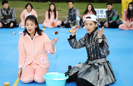 《跑男4》公主团来访 马思纯化身桃花公主撕名牌