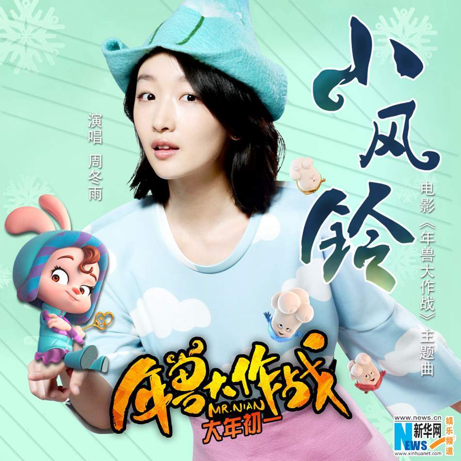 四组明星家庭演唱的电影《年兽大作战》宣传曲《小风铃》一经曝光便大受好评,近日,周冬雨首度为电影献声,献唱电影《年兽大作战》主题曲《小风铃》。和明星家庭版的《小风铃》不同的是,周冬雨的嗓音甜美动人,将小女孩沙果天真、温暖的内心世界通过歌曲表达出来。主题曲《小风铃》由著名影视音乐人董冬冬、陈曦操刀打造,暖心、悠扬而富有童趣,对周冬雨饰演的沙果一角来说,这首歌具有重要意义,也见证了年兽和沙果之间深厚的友情。