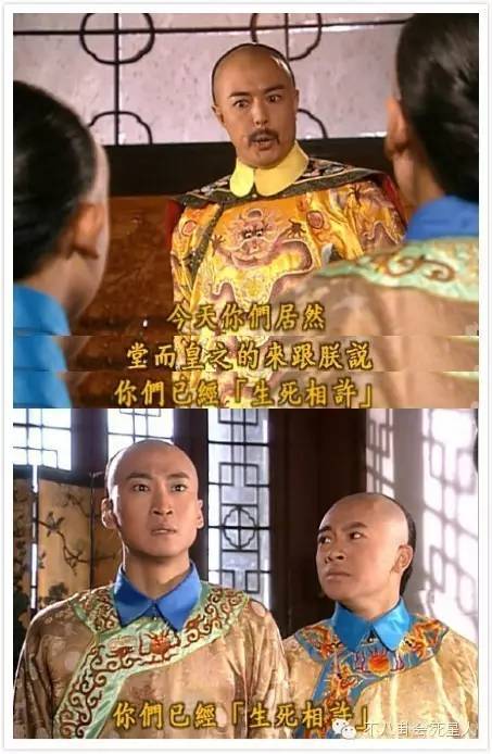 《还珠格格》里,因为镜头的切换,也是让人啼笑皆非,皇阿玛气愤尔康跟五阿哥居然瞒着他跟紫薇小燕子生死相许。