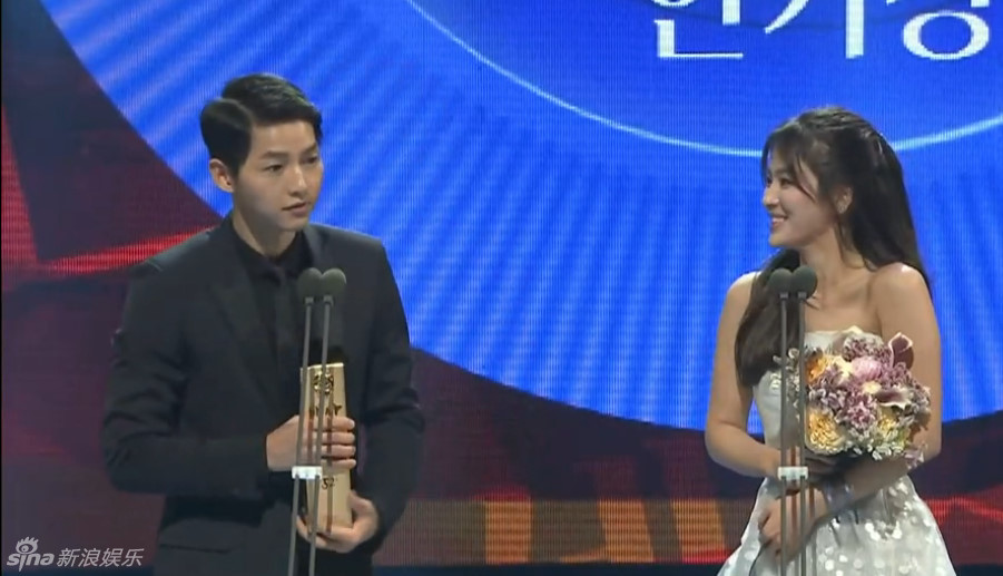 宋仲基宋慧乔各凭《太阳的后裔》获百想电视部门人气奖(组图)