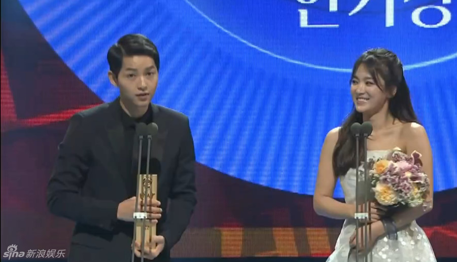 宋仲基宋慧乔各凭《太阳的后裔》获百想电视部门人气奖(组图)