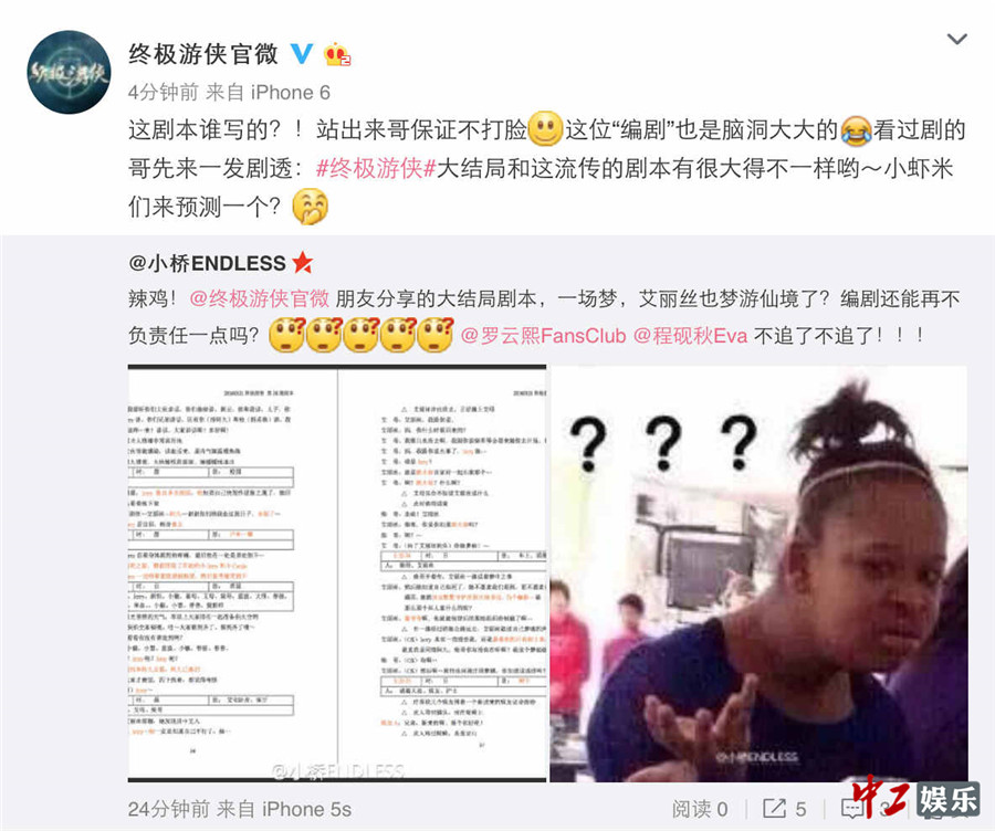而如今网上曝出剧本版大结局,却称从头到尾都是艾丽丝的一个梦境。不少粉丝接受不了,纷纷表示“赤裸裸的抄袭,追了这么久到头来是个梦?”、“尴尬症犯了,还我剧大侠!”对此,芒果TV工作人员辟谣称消息不实,《终极游侠》拍摄、后期、播出同时推进,保密工作十分严谨,外泄剧本并不属实。“本周四、周五收官在即,四集的内容精彩缜密,不会用一个梦草草结束,请粉丝们继续期待。”