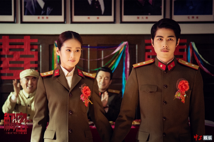 中工娱乐7月14日报道 青春热血谍战大剧《解密》在湖南卫视金鹰独播剧场播出已近尾声。今日,该剧曝光了一组容金珍(陈学冬饰)和翟莉(颖儿饰)大婚的组图。备受观众喜爱的“珍莉夫妇”在历经各种艰难之后终成眷属。但摆在他们面前的“黑密”仍未破译,两人面临着严峻的考验。