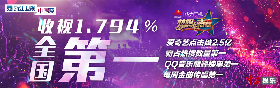 中工娱乐11月28日报道 浙江卫视在2016年末重磅推出的音乐类综艺节目华为手机《梦想的声音》,播出四期口碑节节攀升,收视成绩也势如破竹。上周《梦想的声音》以1.794%的收视登顶周五综艺收视榜首,较开播首期涨幅245%,期期猛涨的收视足以证明节目后劲十足。