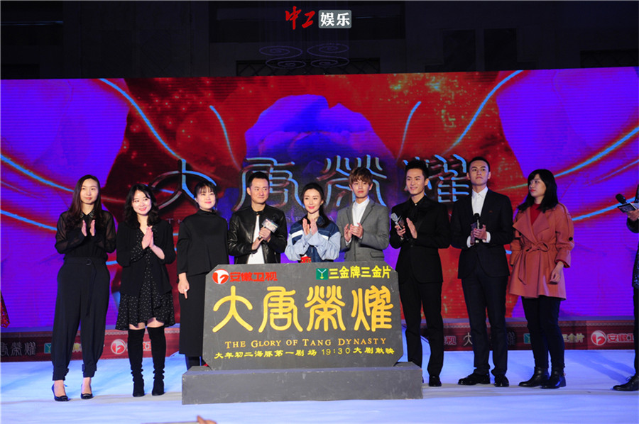 中工娱乐2017年1月17日报道 昨天(1月16日)上午,安徽卫视在合肥为大年初二即将开播的《大唐荣耀》开发布会造势。尽管女主景甜因为在国外拍摄电影没能现身,但现场话题全部围绕她。包括任嘉伦、舒畅、秦俊杰、茅子俊在内的一众主演和编剧,全部齐夸景甜演技,称赞景甜“哭戏超棒”。