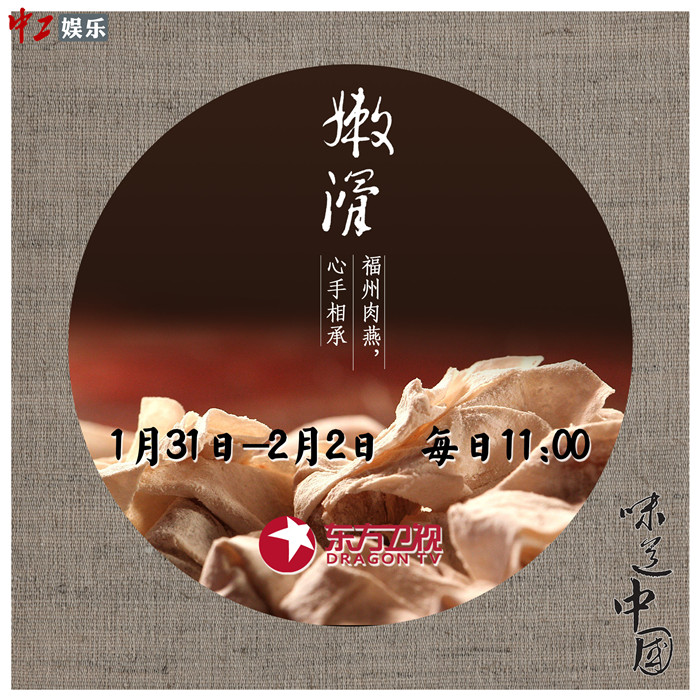 美食纪录片《味道中国》分为三集,于初四至初六展播,以“任运自然”、“心手相承”和“舍得时光”三个主题层层探寻当代中国人与美食相遇相知的故事。节目集合了近20个有关食物的美好故事,从立春到大寒,将深藏于民间的传统手艺展现在观众面前的同时,也展现出这些传统美食手艺人的坚守。本纪录片历经2年,深入民间进行探访,将古老、传统的美食技法和饮食文化一网打尽,通过对民间饮食人物故事的采集,重现悠久、缠绵的“民间味道”。