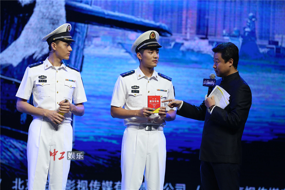 发布会现场以动态的蔚蓝大海为主视觉,深沉的海洋蓝萦绕全场,让人在炎炎夏日中倍感清凉。发布会以海政文工团带来的潜艇兵之歌《不要问我在哪里》作为开场,荡气回肠的潜艇兵宣言将现场的气氛瞬间点燃。当大家还沉浸在浓浓的爱国情怀中时,剧中演员以部队行军的方式跑步登台,实力派演员王强带领一众主演一同喊出艇训——听党指挥,作风优良;不畏强敌,固我海疆!振聋发聩的庄严宣誓将潜艇兵英勇无畏、一往无前的精神淋漓尽致的展现出来。在惊艳亮相后,主演们和观众分享了拍摄过程中的苦与乐,青春气息十足的90后新生代演员们每个人都用极具角色特征的一件道具向大家展示了自己的鲜明个性,在剧中饰演鹿宁的韩宇辰则当场上演了“东北范儿”喊麦笑翻全场,端着烤串儿上场的黄小夏饰演者王佳宇更是讲出了新一代军嫂心声:“喜欢他就不要想太多,特别简单。”除了欢声笑语,大家也回忆起拍摄中的困难与艰辛,饰演男主角卢一涛的高旻睿在拍摄中突发阑尾炎,为了不耽误时间,他在手术后七天就重新投入到拍摄当中,简直是用生命在演戏。演过了潜艇兵,自然也收获了一身本领,在接下来的潜艇兵技能大比拼和抢答环节,主演们的表现也相当精彩。因为在平时的拍摄中早就习惯了穿梭于狭窄的潜艇入口,所以在现场挑战穿越救生圈时大家全部顺利通过,闪电般的速度令人惊叹。此外,主演们对各类关于潜艇的知识也都对答如流,可见在拍摄期间是做足了功课,认真又敬业的表现让人更加期待《深海利剑》的到来。