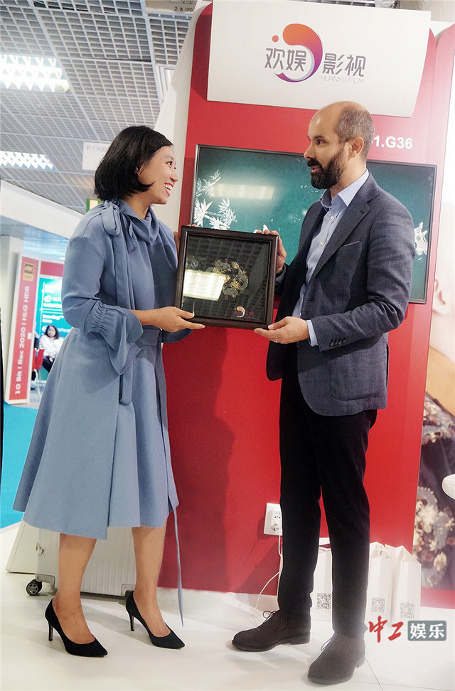 在法国当地时间10月18日结束的2017戛纳秋季国际电视节上,受邀参加的欢娱影视带去了三部富有中国传统文化内涵的电视剧参展。这些作品中的刺绣、昆曲、书法、二十四节气等传统文化元素以独特的文化记忆向海外观众传递着中国文化的匠心制作。现场,欢娱影视独具中国特色的展台吸引了戛纳电视节组委会前来参观,欢娱影视CEO杨乐向其详细介绍了刺绣等中国传统文化,并将绣品赠予组委会留念。新华社在报道中对欢娱影视用做工精良的乾隆常服、皇后朝服、朝冠、胭脂盒等传递中国文化魅力,通过电视剧带动传统文化出海表示赞赏。