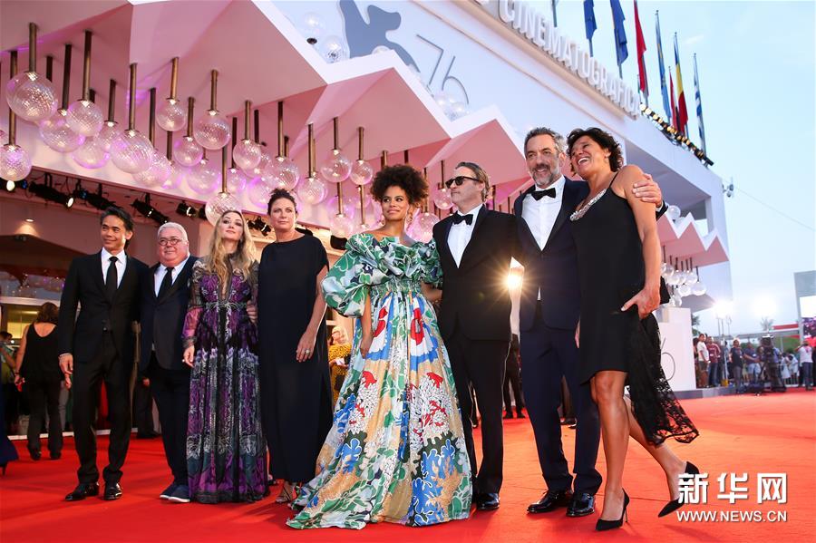 8月28日,在意大利威尼斯,第76届威尼斯电影节主竞赛单元的评委出席拍照式。第76届威尼斯电影节于8月28日至9月7日在意大利水城威尼斯举行。