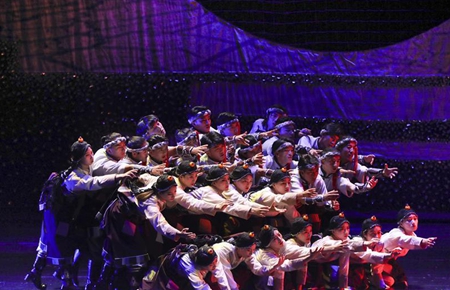 9月16日,演员在甘肃大剧院表演舞剧《盛世锅庄》。当日,大型舞剧《盛世锅庄》在甘肃兰州上演。锅庄舞,藏语意为圆圈歌舞,是藏族三大民间舞蹈之一。