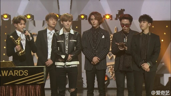 值得一提的是,昨晚的“唱片大赏”到场的嘉宾中,SM公司的艺人占了4组:Super Junior、f(x)、SHINee、EXO并且都获得了“本赏”。而之前几届“金唱片”,SM公司一直都是最大赢家,从2008年开始至今,连续8年,每年的“唱片本赏”都有SM公司的艺人获得,真是“获奖专业户”。
