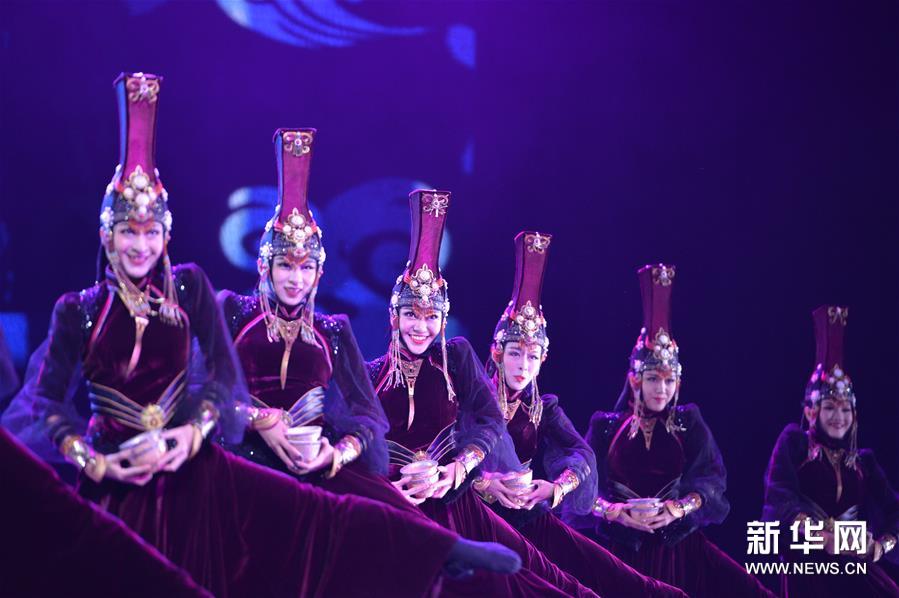 1月6日,演员在2019内蒙古新年舞蹈晚会上表演群舞《敬》。新华社发(王正 摄)