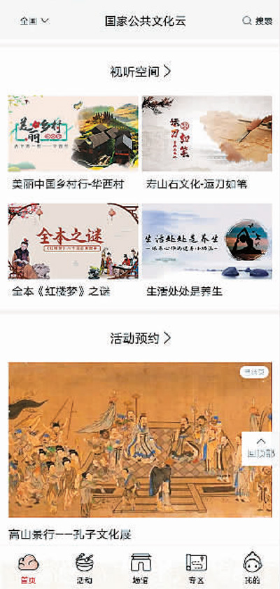 国家公共文化云是统筹整合全国文化信息资源共享工程、数字图书馆推广工程、公共电子阅览室建设计划三大惠民工程,升级推出的公共数字文化服务总平台。图为国家公共文化云APP界面。