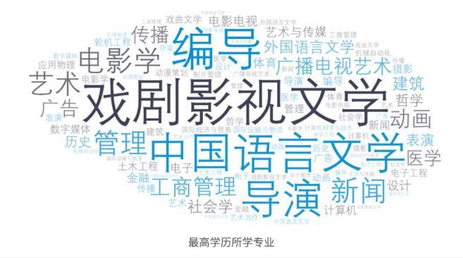受访编剧的最高学历所学专业中,以戏剧影视文学为主的文科类学科占绝大多数,超过80%。同时,报告也发现,还有不少诸如建筑学、医学、会计学、计算机科学等背景的人走进这一行。