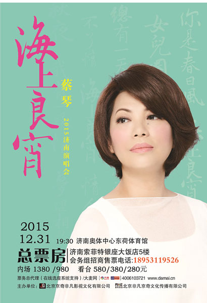 拥有试音碟版完美声线的歌手蔡琴,将于12月31日携《海上良宵》演唱会亮相济南奥体中心东荷体育馆。除了让歌迷能够在演出现场大饱耳福之外,蔡琴更将与广大歌迷在演唱会中坦诚分享自己婚姻、事业及生活的人生感悟,希望借美好的音乐激发生命的活力,召唤人们对于追求人生理想的勇气。