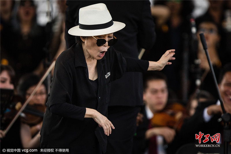 82岁列侬遗孀小野洋子放声高歌 皮肤松弛显老态(高清组图)
