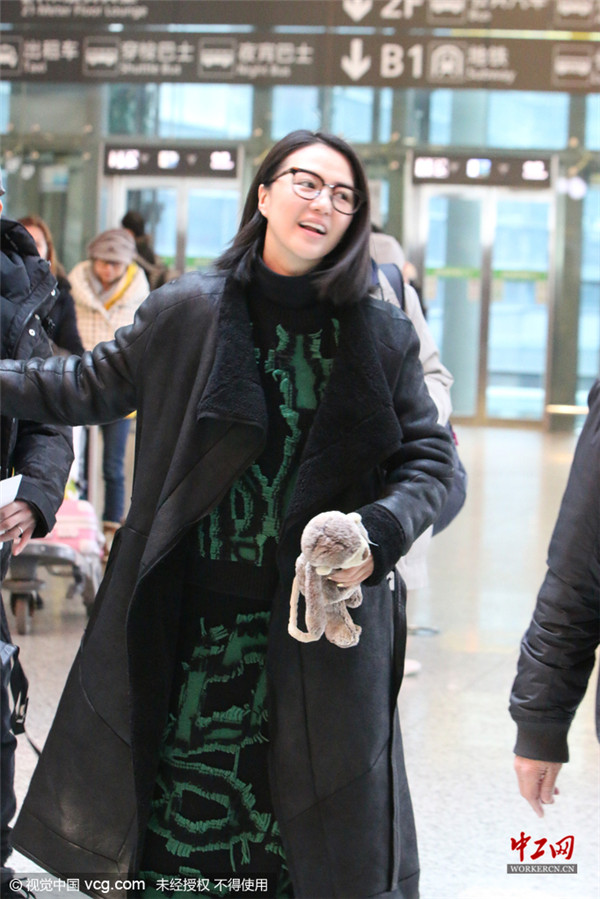 谭维维一路手拿公仔现身上海机场,一路把玩。走着走着偶遇一个男子并兴奋的冲上前打招呼,男子搂着她与其热聊,之后深情拥抱一番,仔细一看,原来此男子是刘璇老公王弢,一行音乐人背着乐器在一起。