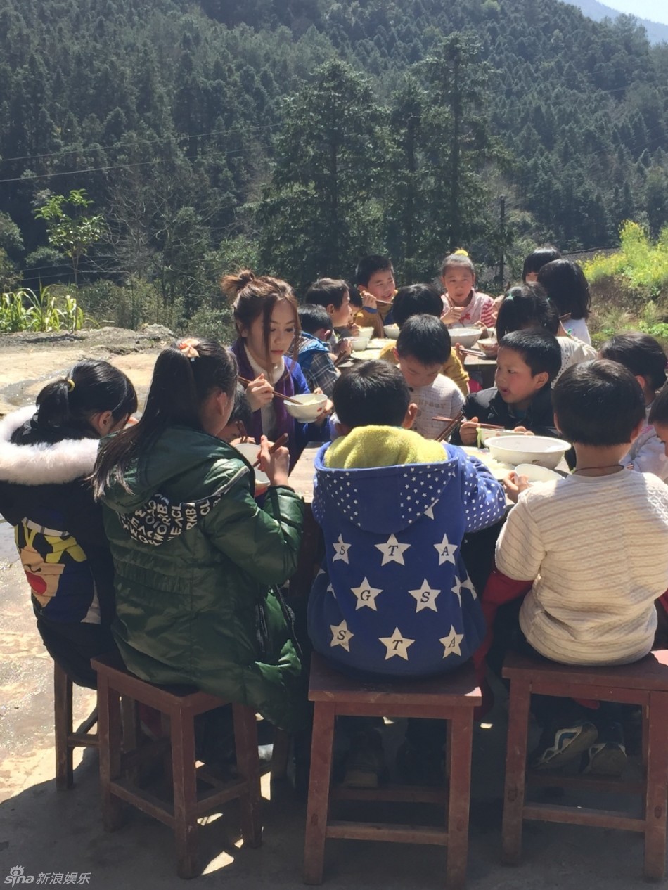 邓紫棋与山里孩子们一起吹泡沫唱歌吃饭放风筝(图)