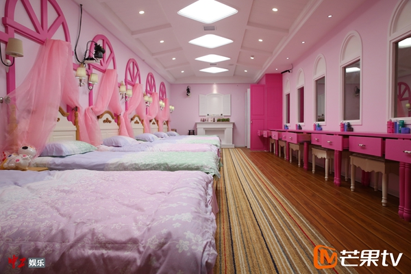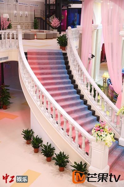 楼梯上的粉色星空渐变地毯,为超女铺出通往一条梦想的阶梯。