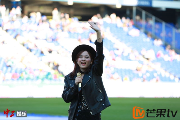 中工娱乐5月16日讯 北京时间5月16日凌晨1点,2016超级女声选手圈9空降西甲收官战,手持特别定制版天价纯金话筒(造价约为25万欧元)现场献唱队歌与超女经典曲目《想唱就唱》,成为了当日西甲收官战的吸睛焦点。