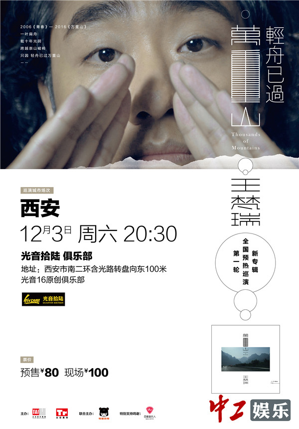 此外,12月3日,王梵瑞轻舟已过万重山新专辑全国巡演西安首站现场演唱部分曲目也被曝光。新专辑的两波推荐曲《鼓楼先生》正式版和《追求吧 一生就这么一次》将首度面对歌迷演唱,而以往的经典歌曲,诸如《青春》、《时间一枪打在我身上》、《城堡》、《时光谣》等也会一首不落地悉数奉上。据悉,此次预热巡演除了有王梵瑞的家乡西安站之外,还将继续开往郑州、南京、广州、上海等地,令人期待。