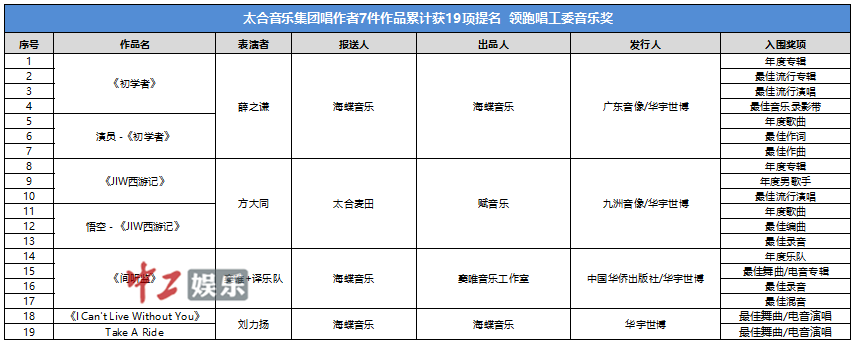 太合音乐集团累计斩获19项唱工委音乐奖入围奖
