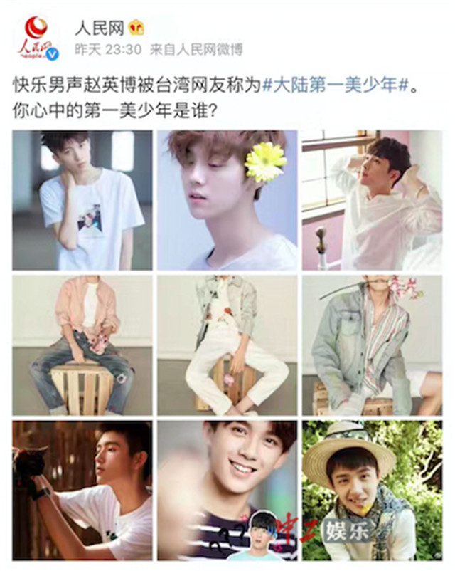 《快男》赵英博获人民网点赞“第一美少年” 与鹿晗王俊凯“同台”比美