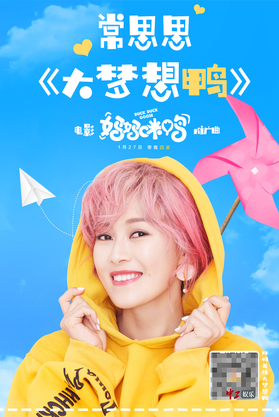 中工娱乐2017年12月26日报道 日前,国产动画电影《妈妈咪鸭》定档贺岁,而由青年歌手常思思献唱的电影推广曲《大梦想鸭》也将于12月27日正式上线,歌曲MV同步发布。先声夺人,常思思首战祭出音乐大招,提前打响寒假欢乐战。