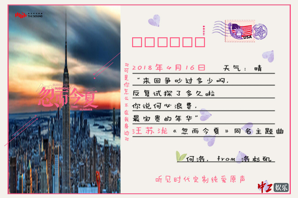 人气唱作才子汪苏泷继继《一笑倾城》、《年轮》后,再次用独特细腻的音乐为电视剧《忽而今夏》诠释创作并演绎同名主题曲。而与以往有所不同的是,《忽而今夏》中的爱情,虽然起始于校园,最终却在现实的漫长距离与时光中打磨沉淀,在真实的痛痒中愈发醇熟真挚。而以往用旋律陪我们度过青春美好梦境的汪苏泷,此次用细腻婉转的曲风刻画下每个人最熟悉最本真的爱情面貌,从纯真的萌芽,到现实的无奈,种种妥协与酸涩,不舍与牵挂。直击每个人心中最柔软的角落,这个名叫汪苏泷的男孩与他的音乐始终在陪我们一同成长,书写记忆,从未缺席!