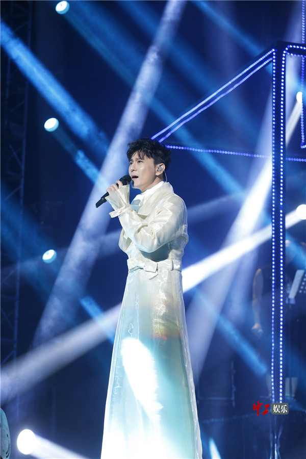 演唱会现场处处彰显主题“未来式”,舞台充分利用立体空间元素,大面积的线条元素,未来感十足。晚上19点整,一袭白色长袍的张信哲化身白马王子亮相,儒雅中透着大气风范。开场曲《爱如潮水》即迎来全场大合唱,演唱会第一首歌就是大合唱的场面,也就张信哲有这个实力。“很开心再一次站在这个舞台上面,距离上次已经有三年时间了。这三年来你们还好吗?我已经把自己调整在最好的状态,我希望今天可以跟大家开开心心的分享这次的演唱会。”张信哲的开场白简单、真挚。
