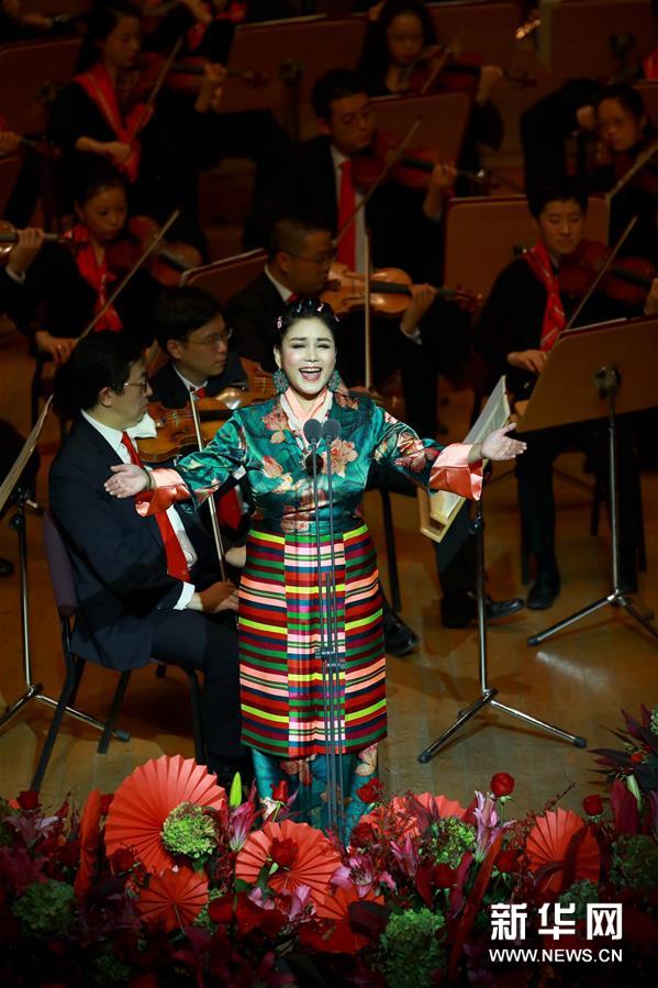 12月31日晚,歌唱家索朗旺姆在演唱经典歌曲。